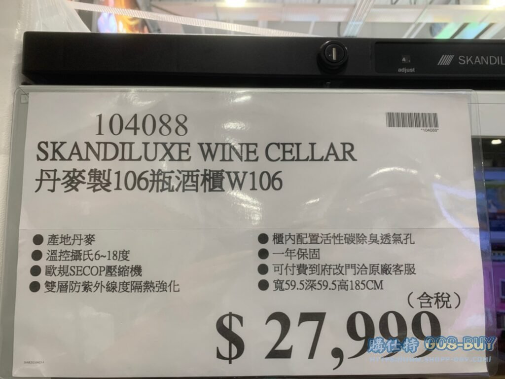 家家電產品 SKANDILUXE 丹麥製106瓶酒櫃W106 #104088 By 網站小編 2022 年 2 月 28 日 384 產品資訊 產品資訊 產品名稱SKANDILUXE WINE CELLAR 丹麥製106瓶酒櫃W106 #104088價格27999產地丹麥包裝規格一組(型號:W106 容量可放:106瓶酒)(規格:寬59.5公分 深59.5公分 高185公分)保存期限保固一年備註櫃內配置活性碳除臭透氣孔溫控攝氏6~18度歐規SECOP壓縮機雙層防紫外線度隔熱強化※可付費道府改們請洽原廠客服※→商品問題回報← 相關 標籤SKANDILUXE酒櫃 前一篇文章SHARP 253L FRIDGE 253公升變頻雙門冰箱 SJ-GX25-SL #121766下一篇文章VINVAUTZ 12瓶電子溫控單溫區酒櫃 VZ12ABT #117769 網站小編https://shopp-day.com 或許你也感興趣 價格優惠資訊 2025好市多客製生日蛋糕價格表 價格優惠資訊 好市多Line社群加入方法 保健品&藥品 新甘木堅胃腸藥顆粒40包 #194496 購仕特-CosBuy 查詢排行 價格優惠資訊 2025好市多客製生日蛋糕價格表 價格優惠資訊 好市多Line社群加入方法 保健品&藥品 新甘木堅胃腸藥顆粒40包 #194496 價格優惠資訊 2025好市多會員護照-春季專案商品一覽表 價格優惠資訊 好市多美國牛肉整箱銷售價格表(2024/5/7) 裝載更多 熱門推薦 咖啡機 DOLCE GUSTO GENIO S+ COMBO 雀巢義式膠囊咖啡機 含128顆咖啡膠囊 #128877 冰箱 SHARP夏普變頻雙門冰箱253公升 SJ-H25Y-WH #137098 咖啡機 PHILIPS ESPRESSO MACHINE全自動義式咖啡機 #130890 其他家電用品 TRESANTI FIREPLACE 造型電暖爐 尺寸約193X50X70公分 #124273 家電產品 AIRMATE CERAMIC HEATER 艾美特陶瓷電暖器2入組 智能人體感知功能 HP12101M #116015 裝載更多