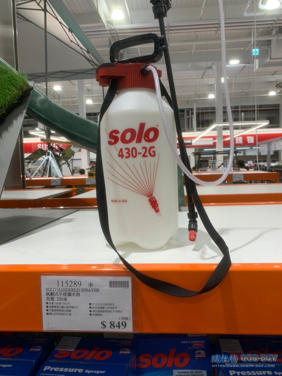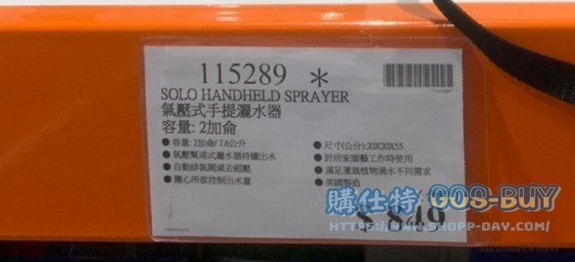 家運動戶外用品園藝相關 SOLO HANDHELD SPRAYER 氣壓式手提灑水器 容量:2加侖 #115289 By 網站小編 2022 年 2 月 26 日 262 產品資訊 產品資訊 產品名稱SOLO HANDHELD SPRAYER 氣壓式手提灑水器 容量:2加侖 #115289價格849產地美國包裝規格一入(容量:2加侖/7.6公升 尺寸:22 X 20 X 55 公分)保存期限N/A備註氣壓幫浦式灑水器持續出水自動排氣閥減去超壓隨心所欲控制出水量於居家園藝工作時使用滿足灌溉植物澆水不同需求→商品問題回報← 相關 標籤園藝灑水器 前一篇文章AVIER 4K 2米2入HDMI傳輸線+1個HDMI轉接頭 #123165下一篇文章(停售)王品青花驕冷凍經典麻辣鍋 1.4公斤 #128715 網站小編https://shopp-day.com 或許你也感興趣 價格優惠資訊 2025好市多客製生日蛋糕價格表 價格優惠資訊 好市多Line社群加入方法 保健品&藥品 新甘木堅胃腸藥顆粒40包 #194496 購仕特-CosBuy 查詢排行 價格優惠資訊 2025好市多客製生日蛋糕價格表 價格優惠資訊 好市多Line社群加入方法 保健品&藥品 新甘木堅胃腸藥顆粒40包 #194496 價格優惠資訊 2025好市多會員護照-春季專案商品一覽表 價格優惠資訊 好市多美國牛肉整箱銷售價格表(2024/5/7) 裝載更多 熱門推薦 戶外用品 12*16′ TARPS 2 PACK 多功能雙色帆布2入#1600091 園藝相關 好市多花束價格 #111590 #136064 #117849 #28013 旅行用品類 SAMSONITE 22+29吋行李箱二入組#140918 戶外用品 COHO 156公升冰桶 適合露營、釣魚 #1382241 汽機車用品 MICHELIN 米其林18吋輪胎PRIMACY SUV+輪胎 235/60 R18 103V #136585 裝載更多