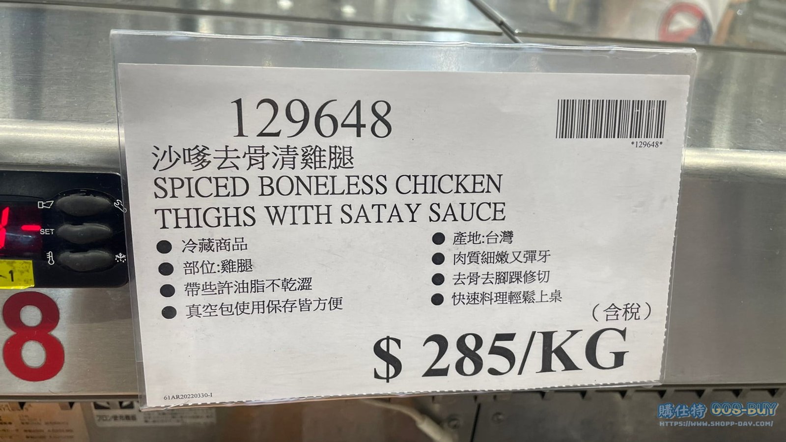 家食品麵包類冷藏食品 SPICED BONELESS CHICKEN 沙嗲去骨清雞腿 #129648 By 網站小編 2022 年 5 月 10 日 337 產品資訊 產品資訊 產品名稱SPICED BONELESS CHICKEN 沙嗲去骨清雞腿 THIGHS WITH SATAY SAUCE #129648價格258/KG產地台灣包裝規格依包裝所示保存期限依包裝所示備註冷藏商品部位:雞腿產地:台灣帶些許油脂不乾澀真空包使用保存皆方便肉質細嫩又彈牙去骨去腳踝修切快速料理輕鬆上桌→商品問題回報← 相關 標籤沙嗲清雞腿真空包雞肉 前一篇文章西雅圖無加糖二合一咖啡21公克 X 100包 #109399下一篇文章科克蘭韓國鹽烤海苔#743354 網站小編https://shopp-day.com 或許你也感興趣 價格優惠資訊 2025好市多客製生日蛋糕價格表 價格優惠資訊 好市多Line社群加入方法 保健品&藥品 新甘木堅胃腸藥顆粒40包 #194496 購仕特-CosBuy 查詢排行 價格優惠資訊 2025好市多客製生日蛋糕價格表 價格優惠資訊 好市多Line社群加入方法 保健品&藥品 新甘木堅胃腸藥顆粒40包 #194496 價格優惠資訊 2025好市多會員護照-春季專案商品一覽表 價格優惠資訊 好市多美國牛肉整箱銷售價格表(2024/5/7) 裝載更多 熱門推薦 價格優惠資訊 2025好市多客製生日蛋糕價格表 價格優惠資訊 好市多美國牛肉整箱銷售價格表(2024/5/7) 價格優惠資訊 好市多日本和牛價格表 2024.4.29更新 冷藏食品 美國特選無骨牛小排火鍋片#25737 冷藏食品 舊振南英式馬芬米福堡#143387 裝載更多