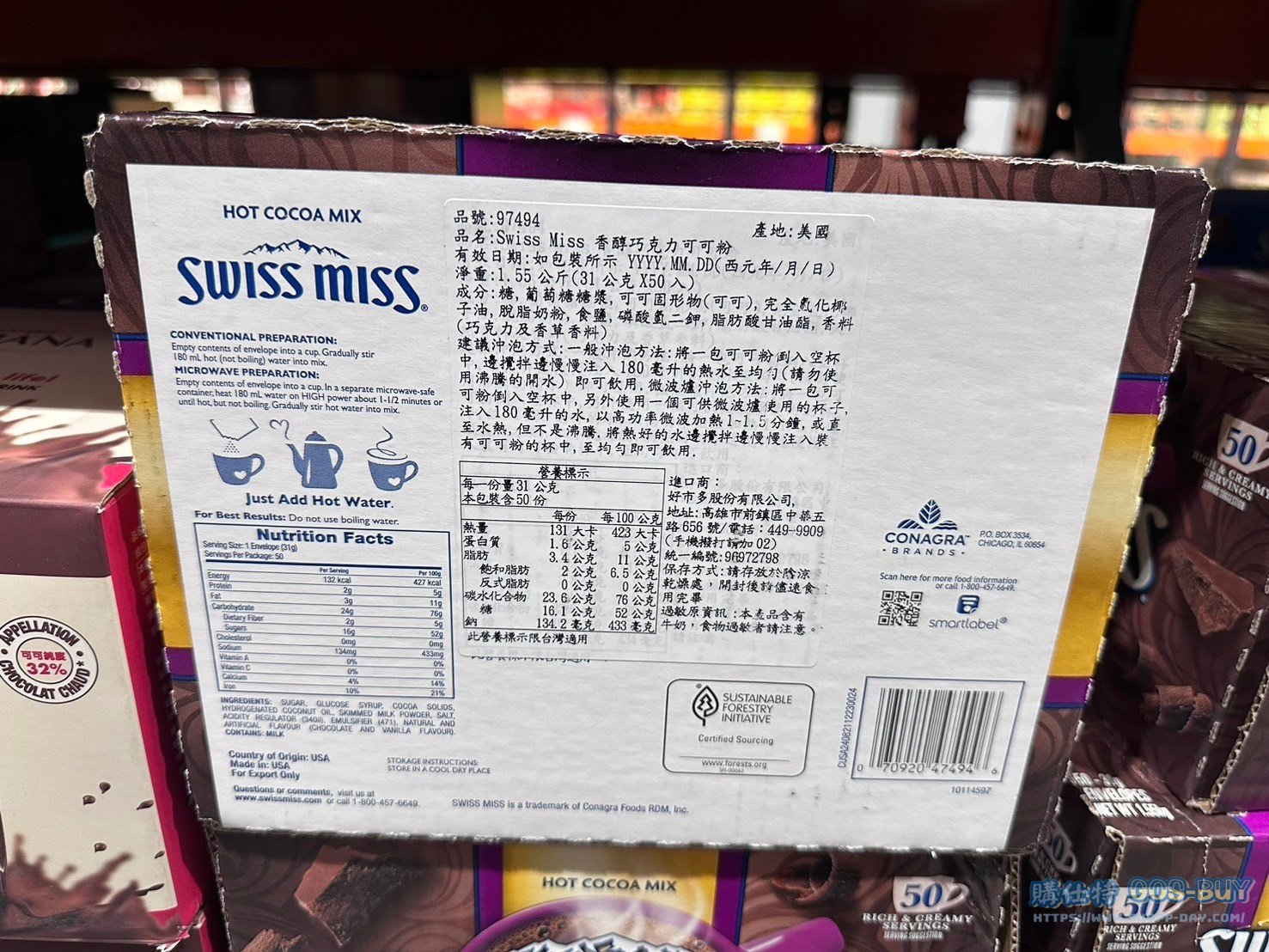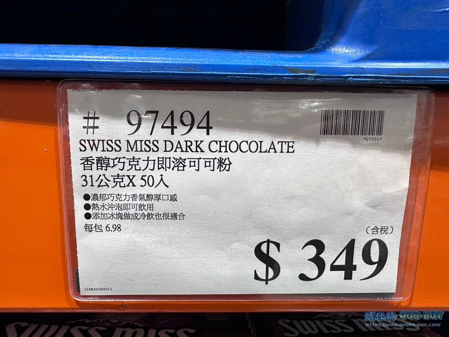 家食品麵包類即溶現泡類 Swiss Miss香醇巧克力即溶可可粉#97494 By 網站小編 2023 年 8 月 6 日 288 產品資訊 產品資訊 產品名稱 Swiss Miss Dark CHOCOLATE 香醇巧克力即溶可可粉31公克X50入#97494 價格 349 產地 美國 包裝規格 31公克X50入 保存期限 依包裝所示 備註 濃郁巧克力香氣,醇厚口感熱水沖泡即可飲用可添加冰塊做成冷飲加入咖啡粉即可調製成摩卡風味2024/4/15查價價格由359降價至349降價10元 →商品問題回報← 相關 標籤SWISS MISS可可粉巧克力 前一篇文章EC TP-LINK戶外防水攝影機TC65#136510下一篇文章WEATHERPROFF男連帽防風外套#1311004 網站小編https://shopp-day.com 或許你也感興趣 價格優惠資訊 2025好市多客製生日蛋糕價格表 價格優惠資訊 好市多Line社群加入方法 保健品&藥品 新甘木堅胃腸藥顆粒40包 #194496 購仕特-CosBuy 查詢排行 價格優惠資訊 2025好市多客製生日蛋糕價格表 價格優惠資訊 好市多Line社群加入方法 保健品&藥品 新甘木堅胃腸藥顆粒40包 #194496 價格優惠資訊 2025好市多會員護照-春季專案商品一覽表 價格優惠資訊 好市多美國牛肉整箱銷售價格表(2024/5/7) 裝載更多 熱門推薦 價格優惠資訊 2025好市多客製生日蛋糕價格表 價格優惠資訊 好市多美國牛肉整箱銷售價格表(2024/5/7) 價格優惠資訊 好市多日本和牛價格表 2024.4.29更新 冷藏食品 美國特選無骨牛小排火鍋片#25737 冷藏食品 舊振南英式馬芬米福堡#143387 裝載更多