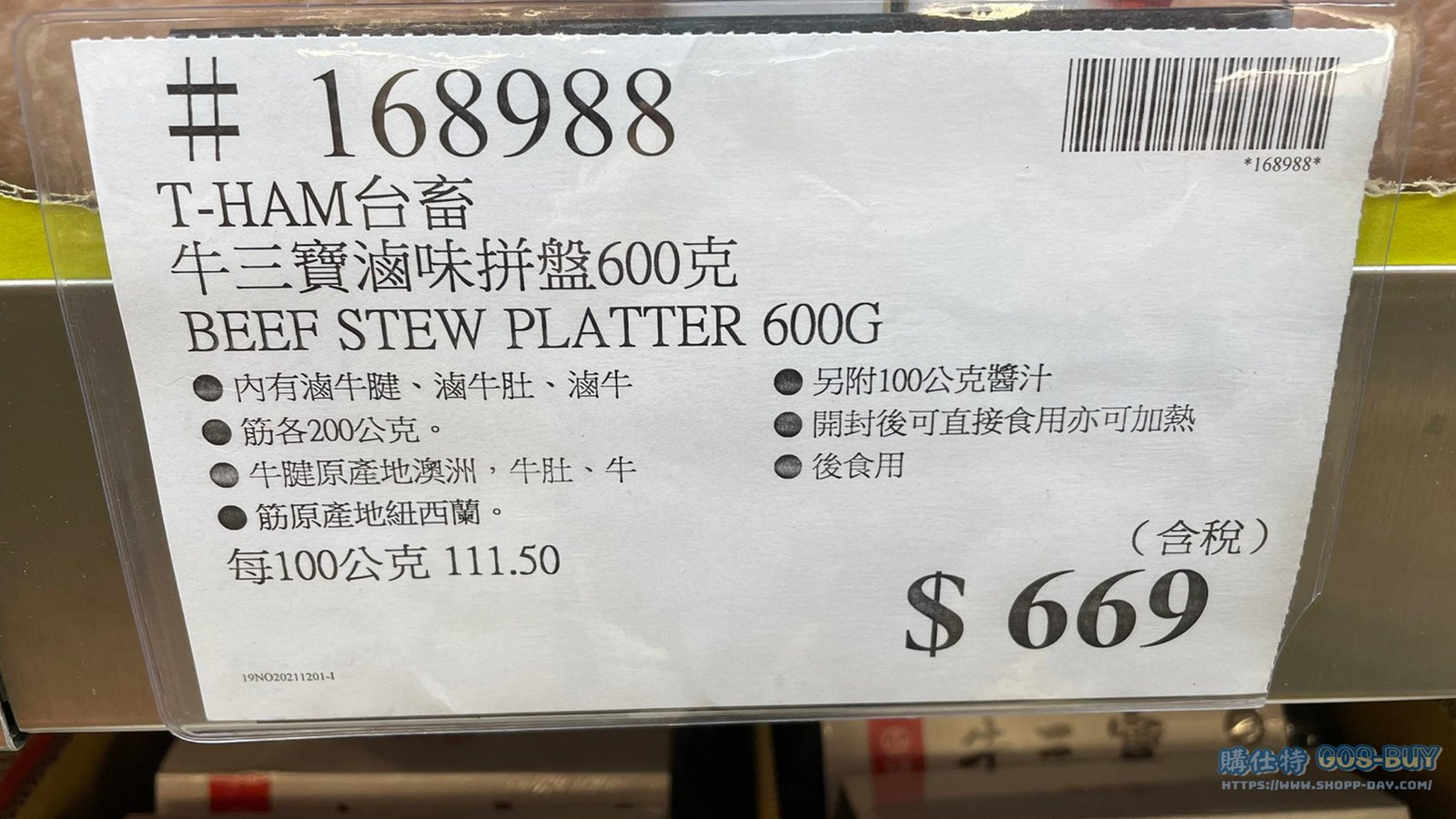 家食品麵包類冷藏食品 T-HAM BEEF STEW PLATTER 600G 台畜 牛三寶滷味拼盤600克 #168988 By 網站小編 2022 年 3 月 8 日 395 產品資訊 產品資訊 產品名稱T-HAM BEEF STEW PLATTER 600G 台畜 牛三寶滷味拼盤600克 #168988價格669產地台灣包裝規格600克保存期限兩個月備註內有滷牛腱、滷牛肚、滷牛筋各200公克。牛腱原產地:澳洲牛肚、牛筋原產地:紐西蘭另附100公克醬汁開封後可直接食用亦可加熱後食用→商品問題回報← 相關 標籤牛筋牛肉牛肚牛腱 前一篇文章有機金滑菇金針菇組 300公克X 4入 #198769下一篇文章KENDALL-JACKSON 白葡萄酒 #116988 網站小編https://shopp-day.com 或許你也感興趣 價格優惠資訊 2025好市多客製生日蛋糕價格表 價格優惠資訊 好市多Line社群加入方法 保健品&藥品 新甘木堅胃腸藥顆粒40包 #194496 購仕特-CosBuy 查詢排行 價格優惠資訊 2025好市多客製生日蛋糕價格表 價格優惠資訊 好市多Line社群加入方法 保健品&藥品 新甘木堅胃腸藥顆粒40包 #194496 價格優惠資訊 2025好市多會員護照-春季專案商品一覽表 價格優惠資訊 好市多美國牛肉整箱銷售價格表(2024/5/7) 裝載更多 熱門推薦 價格優惠資訊 2025好市多客製生日蛋糕價格表 價格優惠資訊 好市多美國牛肉整箱銷售價格表(2024/5/7) 價格優惠資訊 好市多日本和牛價格表 2024.4.29更新 冷藏食品 美國特選無骨牛小排火鍋片#25737 冷藏食品 舊振南英式馬芬米福堡#143387 裝載更多