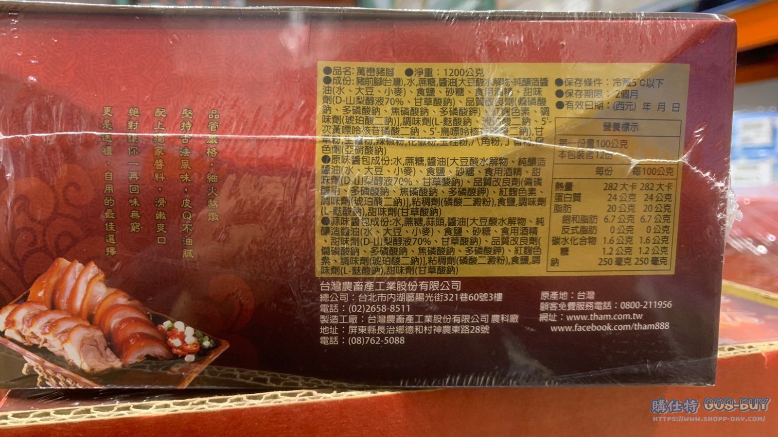 家食品麵包類冷藏食品 台畜萬巒豬腳(附沾醬)#54315 By 網站小編 2022 年 2 月 22 日 529 產品資訊 產品資訊 產品名稱T-HAM PORK LEG STEW 台畜萬巒豬腳(附沾醬) 1.2KG #54315價格425產地台灣包裝規格1.2KG保存期限兩個月備註精選國產新鮮豬肉川燙冰鎮後以傳統滷汁滷煮軟Q而不爛內含蒜蓉醬本禪品內含大鼓可燉湯燉粥2024/1/24查價價格由399漲價為425漲價26元→商品問題回報← 相關 標籤台畜萬巒豬腳 前一篇文章SOMERSBY APPLE CIDER 夏日蜜蘋果酒 330ML X12(BTL) #122822下一篇文章GNARLY HEAD 金芬黛紅酒750ML #89297 網站小編https://shopp-day.com 或許你也感興趣 價格優惠資訊 2025好市多客製生日蛋糕價格表 價格優惠資訊 好市多Line社群加入方法 保健品&藥品 新甘木堅胃腸藥顆粒40包 #194496 購仕特-CosBuy 查詢排行 價格優惠資訊 2025好市多客製生日蛋糕價格表 價格優惠資訊 好市多Line社群加入方法 保健品&藥品 新甘木堅胃腸藥顆粒40包 #194496 價格優惠資訊 2025好市多會員護照-春季專案商品一覽表 價格優惠資訊 好市多美國牛肉整箱銷售價格表(2024/5/7) 裝載更多 熱門推薦 價格優惠資訊 2025好市多客製生日蛋糕價格表 價格優惠資訊 好市多美國牛肉整箱銷售價格表(2024/5/7) 價格優惠資訊 好市多日本和牛價格表 2024.4.29更新 冷藏食品 美國特選無骨牛小排火鍋片#25737 冷藏食品 舊振南英式馬芬米福堡#143387 裝載更多