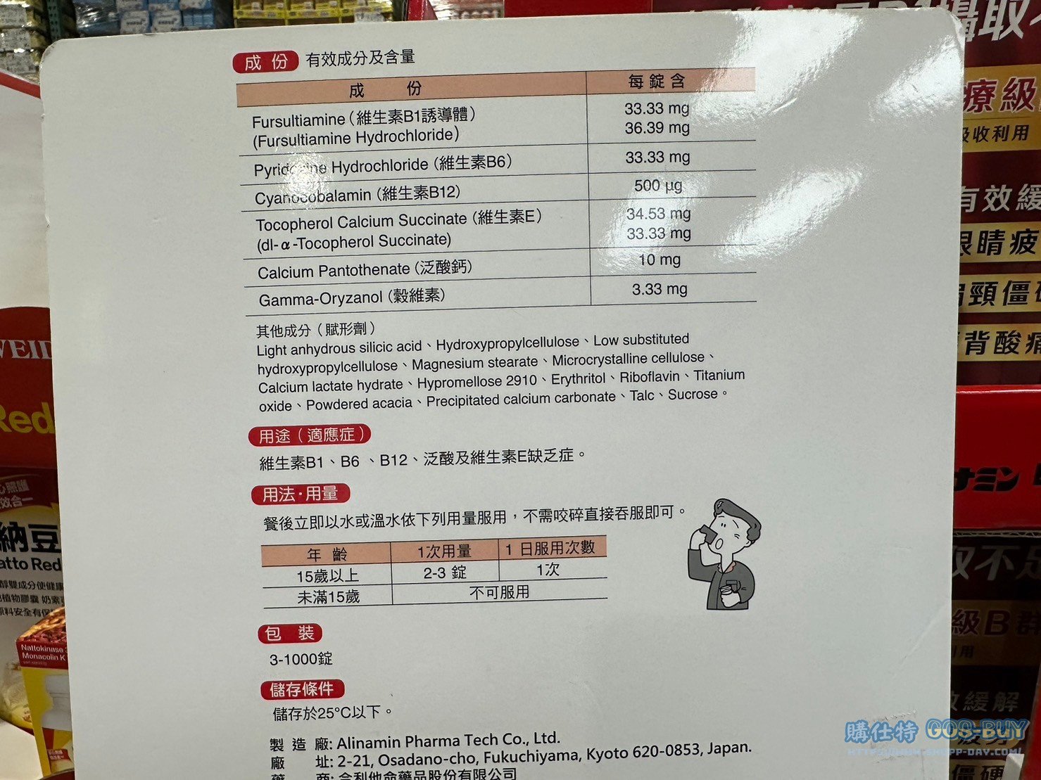 改善眼睛疲勞 肩膀僵硬 腰酸背痛 添加維生素B1、B6、B12 E、泛鈣酸、殼維素。 日本同步配方製造 本產品為醫師指定用藥 衛署藥輸字第025431號 北市衛藥廣字第110010054號 使用說明請詳閱台灣武田官方網站或是商品說明書 |