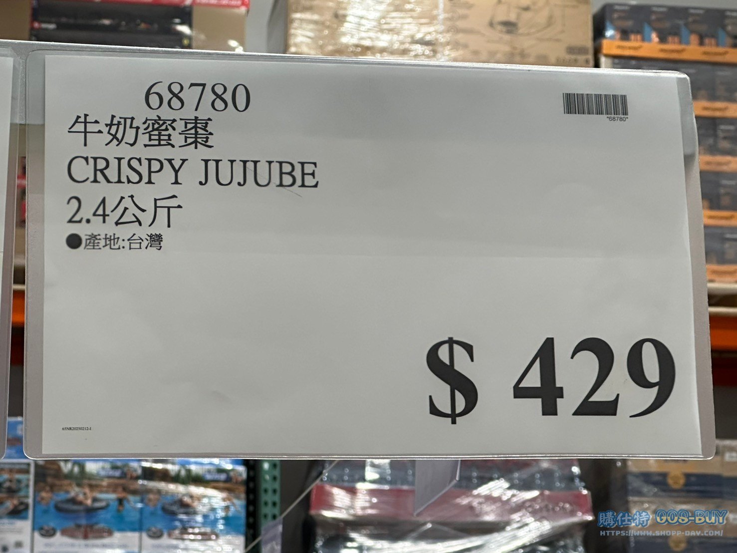 家食品麵包類水果 牛奶蜜棗#68780 By 網站小編 2022 年 3 月 12 日 229 產品資訊 產品資訊 產品名稱CRISPY JUJUBE 牛奶蜜棗 2.4公斤 #68780價格429產地台灣包裝規格2.4公斤保存期限依包裝所示備註台灣當季水果牛奶蜜棗有牛奶香味以及鮮甜的口感2022/1/20查價價格由299漲價為315漲價16元2024/1/17查價價格由315漲價為349漲價34元2025/2/17查價價格由349漲價為429漲價80元→商品問題回報← 相關 標籤冷藏水果牛奶蜜棗 前一篇文章PHILIPS飛利浦軒坦雙感測檯燈 #131314下一篇文章US FUJI APPLE 美國富士蘋果 2.4公斤 #821405 網站小編https://shopp-day.com 或許你也感興趣 價格優惠資訊 2025好市多客製生日蛋糕價格表 價格優惠資訊 好市多Line社群加入方法 保健品&藥品 新甘木堅胃腸藥顆粒40包 #194496 購仕特-CosBuy 查詢排行 價格優惠資訊 2025好市多客製生日蛋糕價格表 價格優惠資訊 好市多Line社群加入方法 保健品&藥品 新甘木堅胃腸藥顆粒40包 #194496 價格優惠資訊 2025好市多會員護照-春季專案商品一覽表 價格優惠資訊 好市多美國牛肉整箱銷售價格表(2024/5/7) 裝載更多 熱門推薦 價格優惠資訊 2025好市多客製生日蛋糕價格表 價格優惠資訊 好市多美國牛肉整箱銷售價格表(2024/5/7) 價格優惠資訊 好市多日本和牛價格表 2024.4.29更新 冷藏食品 美國特選無骨牛小排火鍋片#25737 冷藏食品 舊振南英式馬芬米福堡#143387 裝載更多