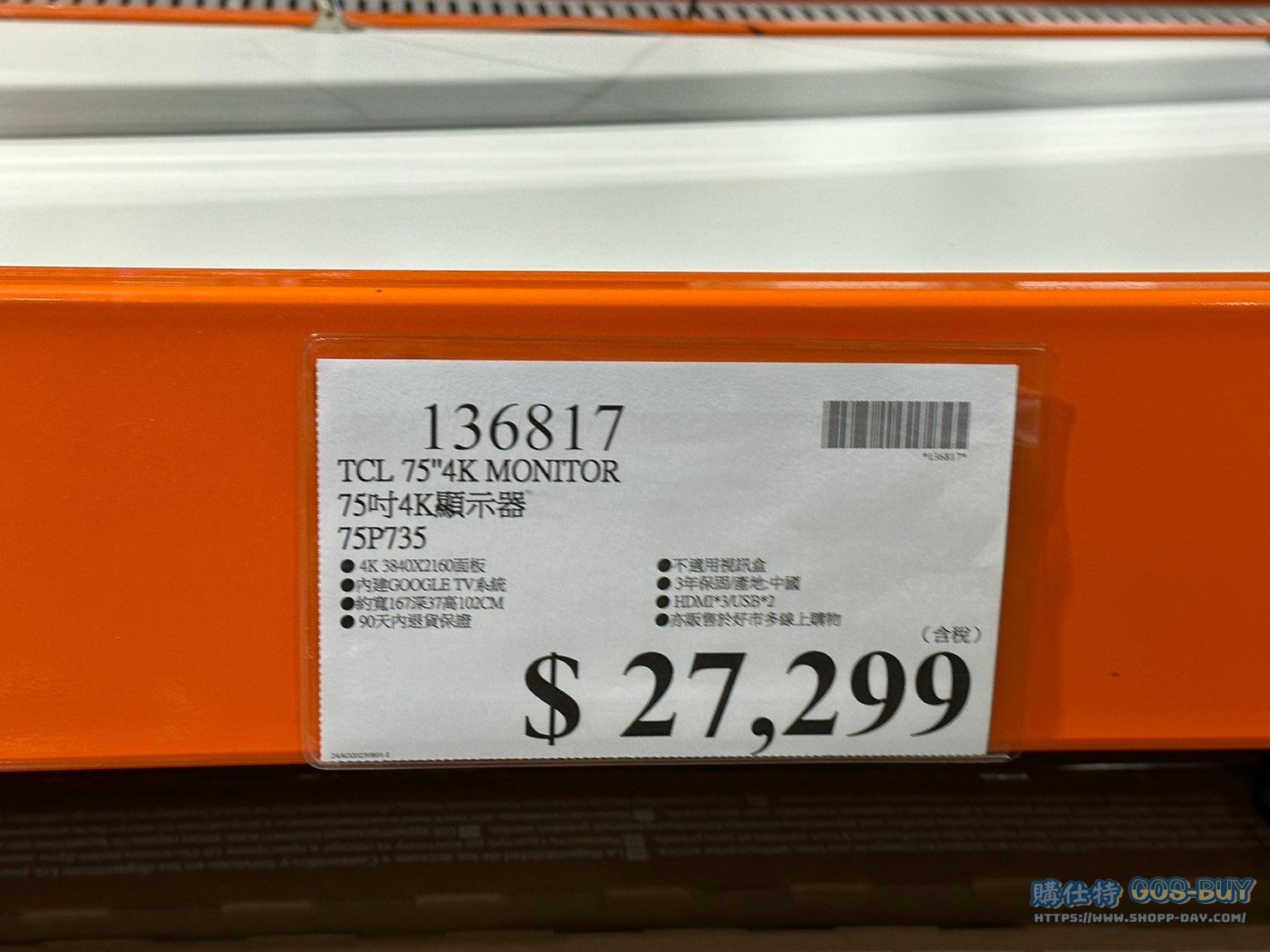 TCL 75吋4K顯示器#75P735#136817
