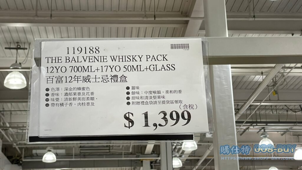 家酒品類威士忌 THE BALVENIE WHISKY PACK 12YO 700ML+17YO 50ML+GLASS 百富12年威士忌禮盒 #119188 By 網站小編 2021 年 12 月 26 日 571 產品資訊 產品資訊 產品名稱THE BALVENIE WHISKY PACK 12YO 700ML+17YO 50ML+GLASS 百富12年威士忌禮盒 #119188價格1399產地蘇格蘭包裝規格12YO 700ML *117YO 50ML*1GLASS(杯子)*1保存期限依包裝所示備註 →商品問題回報← 相關 標籤威士忌百富禮盒蘇格登 前一篇文章SEA CUCUMBER 黑鑽刺參 #86321下一篇文章超濃縮無香精洗衣精 #845621 網站小編https://shopp-day.com 或許你也感興趣 價格優惠資訊 2025好市多客製生日蛋糕價格表 價格優惠資訊 好市多Line社群加入方法 保健品&藥品 新甘木堅胃腸藥顆粒40包 #194496 購仕特-CosBuy 查詢排行 價格優惠資訊 2025好市多客製生日蛋糕價格表 價格優惠資訊 好市多Line社群加入方法 保健品&藥品 新甘木堅胃腸藥顆粒40包 #194496 價格優惠資訊 2025好市多會員護照-春季專案商品一覽表 價格優惠資訊 好市多美國牛肉整箱銷售價格表(2024/5/7) 裝載更多 熱門推薦 其他酒類 日本芒果梅酒#143982 威士忌 KAVALAN噶瑪蘭調酒師精選威士忌#129555 葡萄酒 1865 卡貝納蘇維翁紅酒750ML 2019/2020 #113198 葡萄酒 波姆酒莊琥珀金牌紅酒#125623 威士忌 KAVAKAN 噶瑪蘭威士忌酒展商品一覽表 裝載更多