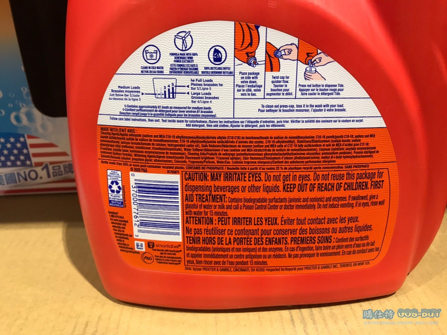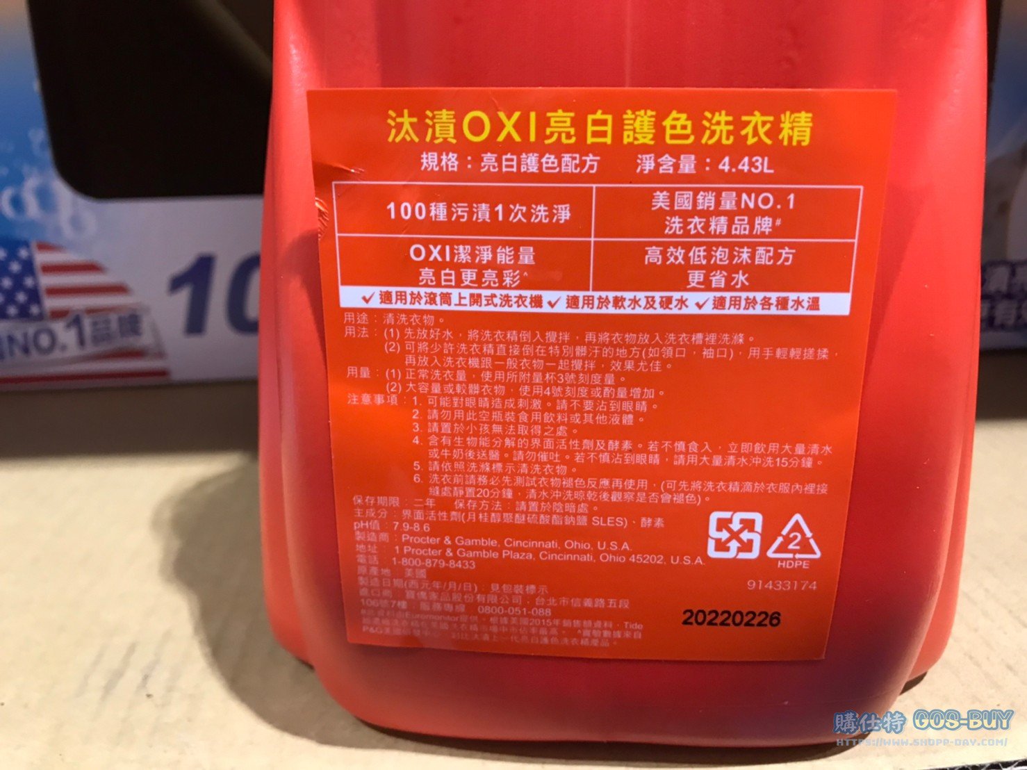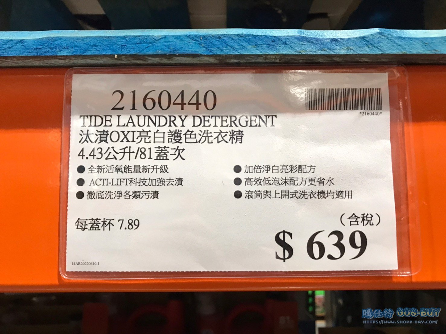 家廚房與居家生活相關 TIDE汰漬OXI亮白護色洗衣精4.43公升 #2160440 By 網站小編 2021 年 12 月 22 日 386 產品資訊 產品資訊 產品名稱TIDE LAUNDRY DETERGENT 汰漬OXI亮白護色洗衣精 4.43公升/81蓋次 #2160440價格639產地美國包裝規格4.43公升/81蓋次保存期限二年備註全新活氧能量新升級ACTI-LIFT科技加強去漬徹底洗淨各類污漬加倍淨白亮彩配方高效低泡沫配方更省水滾筒與上開式洗衣機均適用→商品問題回報← 相關 標籤TIDE汰漬洗衣精 前一篇文章COCOD’OR SCENT DIFFUSER LINE FRIENDS 系列擴香瓶 50毫升X4入 #134320下一篇文章科克蘭食物烹調專用紙 #1323118 網站小編https://shopp-day.com[td_block_7 block_template_id="td_block_template_8" custom_title="大家也在找" border_color="#81d742" category_id="_current_tag"] 或許你也感興趣 價格優惠資訊 2025好市多客製生日蛋糕價格表 價格優惠資訊 好市多Line社群加入方法 保健品&藥品 新甘木堅胃腸藥顆粒40包 #194496 購仕特-CosBuy 查詢排行 價格優惠資訊 2025好市多客製生日蛋糕價格表 價格優惠資訊 好市多Line社群加入方法 保健品&藥品 新甘木堅胃腸藥顆粒40包 #194496 價格優惠資訊 2025好市多會員護照-春季專案商品一覽表 價格優惠資訊 好市多美國牛肉整箱銷售價格表(2024/5/7) 裝載更多 熱門推薦 廚房與居家生活相關 普拿疼伏冒熱飲20包 #84499 廚房與居家生活相關 DOMAINE DE LA BAUME 波姆酒莊金牌FITOU紅酒 #121971 廚房與居家生活相關 SIMON LI三人座牛皮沙發#1695608 廚房與居家生活相關 TAISHO大正胃腸藥顆粒52包 #126969 廚房與居家生活相關 IDEA NUOVA 摺疊椅 #1393843 裝載更多