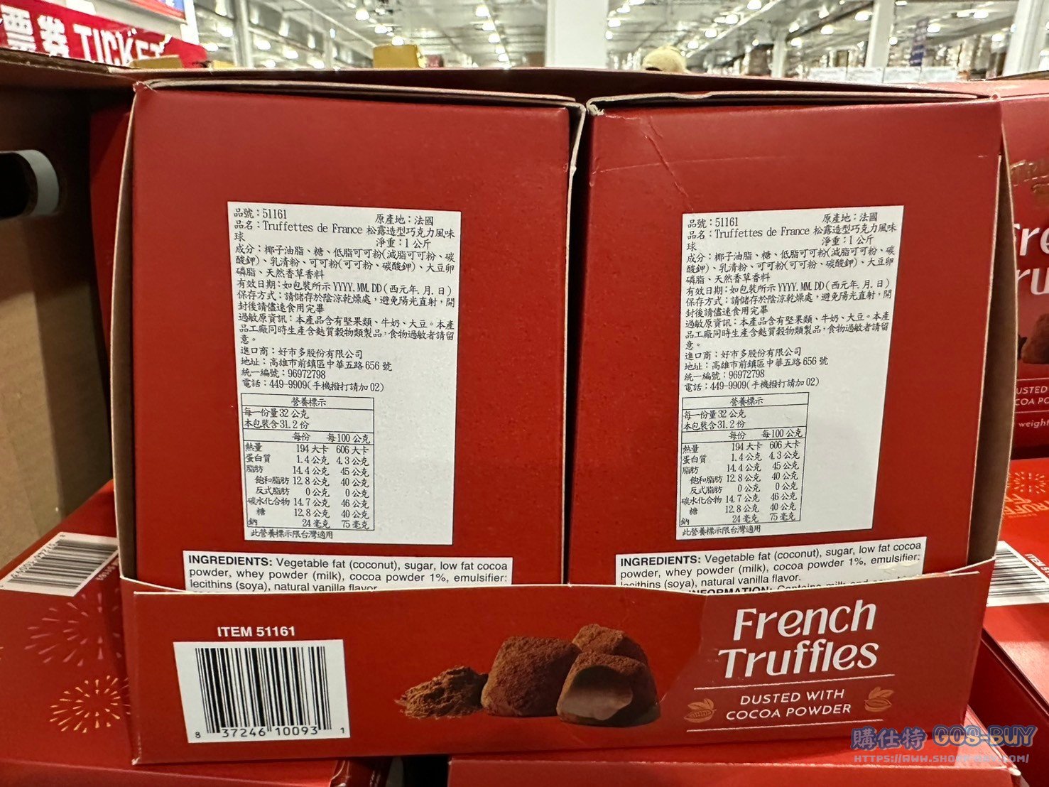 家廚房與居家生活相關 TRUFFETTES DE FRANCE松露巧克力風味球#51161 By 網站小編 2022 年 2 月 23 日 350 產品資訊 產品資訊 產品名稱TRUFFETTES DE FRANCE 松露巧克力風味球 1公斤X2入 #51161價格549產地法國包裝規格1公斤X2入保存期限依包裝所示備註絲滑順口 經典美味請存放於陰涼乾燥處原產地:法國2022/10/10查價價格由399漲價為499漲價100元2025/2/2查價價格由499漲價為549漲價50元→商品問題回報← 相關 標籤TRUFFETTES DE FRANCE巧克力巧克力球松露 前一篇文章CHIOSTRO PANETTONE 義大利水果蛋糕 每罐1公斤 #132784下一篇文章RAISIN SWEET BUTTER SPREAD 葡萄乾奶酥抹醬 #134416 網站小編https://shopp-day.com 或許你也感興趣 價格優惠資訊 2025好市多客製生日蛋糕價格表 價格優惠資訊 好市多Line社群加入方法 保健品&藥品 新甘木堅胃腸藥顆粒40包 #194496 購仕特-CosBuy 查詢排行 價格優惠資訊 2025好市多客製生日蛋糕價格表 價格優惠資訊 好市多Line社群加入方法 保健品&藥品 新甘木堅胃腸藥顆粒40包 #194496 價格優惠資訊 2025好市多會員護照-春季專案商品一覽表 價格優惠資訊 好市多美國牛肉整箱銷售價格表(2024/5/7) 裝載更多 熱門推薦 廚房與居家生活相關 普拿疼伏冒熱飲20包 #84499 廚房與居家生活相關 DOMAINE DE LA BAUME 波姆酒莊金牌FITOU紅酒 #121971 廚房與居家生活相關 SIMON LI三人座牛皮沙發#1695608 廚房與居家生活相關 TAISHO大正胃腸藥顆粒52包 #126969 廚房與居家生活相關 IDEA NUOVA 摺疊椅 #1393843 裝載更多