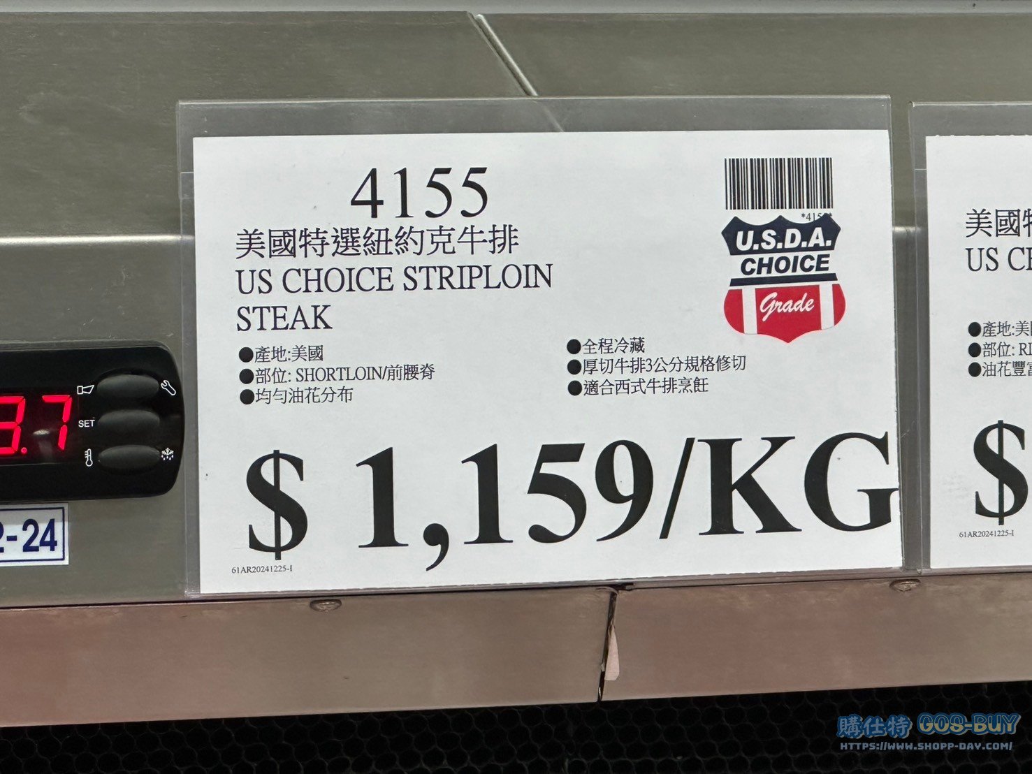 家食品麵包類冷藏食品 美國特選紐約客牛排#4155 By 網站小編 2021 年 12 月 10 日 426 產品資訊 產品資訊 產品名稱US CHOICE STRIPLOIN STEAK 美國特選紐約客牛排 #4155價格1159/KG (價格僅供參考 會因時價隨時變動)產地美國包裝規格依包裝所示保存期限依包裝所示備註產地:美國 部位:SHORTLOIN/前腰脊,適合西式牛排烹飪。均勻油花分布、全程冷藏,厚切牛排3公分規格修切。→商品問題回報 相關 標籤牛排牛肉紐約客美國牛肉 前一篇文章US PRIME RIB EYE STEAK 美國頂級沙朗牛排 #28910下一篇文章美國特選嫩肩里肌牛排#92223 網站小編https://shopp-day.com 或許你也感興趣 價格優惠資訊 2025好市多客製生日蛋糕價格表 價格優惠資訊 好市多Line社群加入方法 保健品&藥品 新甘木堅胃腸藥顆粒40包 #194496 購仕特-CosBuy 查詢排行 價格優惠資訊 2025好市多客製生日蛋糕價格表 價格優惠資訊 好市多Line社群加入方法 保健品&藥品 新甘木堅胃腸藥顆粒40包 #194496 價格優惠資訊 2025好市多會員護照-春季專案商品一覽表 價格優惠資訊 好市多美國牛肉整箱銷售價格表(2024/5/7) 裝載更多 熱門推薦 價格優惠資訊 2025好市多客製生日蛋糕價格表 價格優惠資訊 好市多美國牛肉整箱銷售價格表(2024/5/7) 價格優惠資訊 好市多日本和牛價格表 2024.4.29更新 冷藏食品 美國特選無骨牛小排火鍋片#25737 冷藏食品 舊振南英式馬芬米福堡#143387 裝載更多
