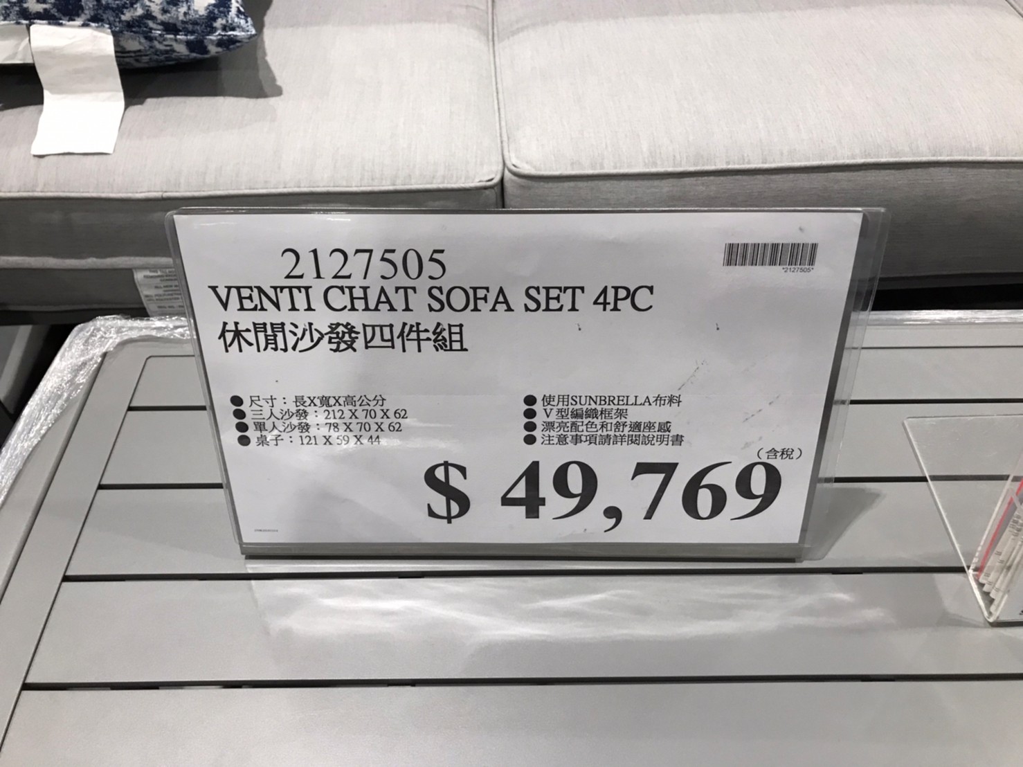 家廚房與居家生活相關 VENTI休閒沙發四件組#2127505 By 網站小編 2023 年 2 月 8 日 381 產品資訊 產品資訊 產品名稱 VENTI CHAT SOFA SET 4PC 休閒沙發四件組#2127505 價格 49769 產地 中國 包裝規格 四件組 保存期限 N/A 備註 三人沙發:212X70X62單人沙發:78X70X62桌子:121X59X44使用SUNBRELLA布料V型編織框架漂亮配色和舒適座感注意事項請詳閱說明書 →商品問題回報← 相關 標籤VENTI沙發 前一篇文章AGIO HOLMES咖啡沙發組三件組#2127804下一篇文章戶外鋁製長椅#2327731 網站小編https://shopp-day.com 或許你也感興趣 價格優惠資訊 2025好市多客製生日蛋糕價格表 價格優惠資訊 好市多Line社群加入方法 保健品&藥品 新甘木堅胃腸藥顆粒40包 #194496 購仕特-CosBuy 查詢排行 價格優惠資訊 2025好市多客製生日蛋糕價格表 價格優惠資訊 好市多Line社群加入方法 保健品&藥品 新甘木堅胃腸藥顆粒40包 #194496 價格優惠資訊 2025好市多會員護照-春季專案商品一覽表 價格優惠資訊 好市多美國牛肉整箱銷售價格表(2024/5/7) 裝載更多 熱門推薦 廚房與居家生活相關 普拿疼伏冒熱飲20包 #84499 廚房與居家生活相關 DOMAINE DE LA BAUME 波姆酒莊金牌FITOU紅酒 #121971 廚房與居家生活相關 SIMON LI三人座牛皮沙發#1695608 廚房與居家生活相關 TAISHO大正胃腸藥顆粒52包 #126969 廚房與居家生活相關 IDEA NUOVA 摺疊椅 #1393843 裝載更多