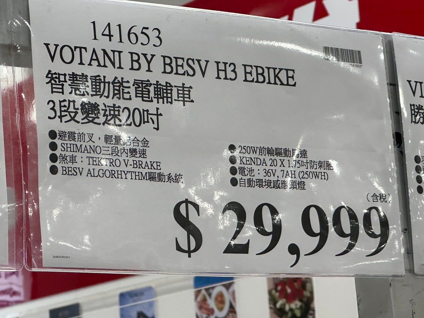 家電子產品其他電子產品 VOTANI H3智慧動能電輔車#141653 By 網站小編 2024 年 2 月 4 日 711 產品資訊 產品資訊 產品名稱VOTANI BY BESV H3 EBIKE智慧動能電輔車3段變速20吋#141653價格29999產地台灣包裝規格一台(型號:H3)保存期限N/A備註避震前叉,輕量鋁合金,250W前輪驅動馬達。SHIMANO三段內變速,KENDA 20 X 1.75吋防刺輪胎。煞車:TEKTRO V-BRAKE,電池:36V,7AH(250WH)。BESV ALGORHYTHM驅動系統,自動環境感應頭燈。→商品問題回報← 相關 標籤VOTANI電動車電輔車 前一篇文章萬歲牌夏威夷果#96134下一篇文章太和殿私房麻辣火鍋湯底#142965 網站小編https://shopp-day.com 或許你也感興趣 價格優惠資訊 2025好市多客製生日蛋糕價格表 價格優惠資訊 好市多Line社群加入方法 保健品&藥品 新甘木堅胃腸藥顆粒40包 #194496 購仕特-CosBuy 查詢排行 價格優惠資訊 2025好市多客製生日蛋糕價格表 價格優惠資訊 好市多Line社群加入方法 保健品&藥品 新甘木堅胃腸藥顆粒40包 #194496 價格優惠資訊 2025好市多會員護照-春季專案商品一覽表 價格優惠資訊 好市多美國牛肉整箱銷售價格表(2024/5/7) 裝載更多 熱門推薦 價格優惠資訊 Costco 好市多 Apple Watch 2022年版價格表 戶外用品 12*16′ TARPS 2 PACK 多功能雙色帆布2入#1600091 園藝相關 好市多花束價格 #111590 #136064 #117849 #28013 旅行用品類 SAMSONITE 22+29吋行李箱二入組#140918 戶外用品 COHO 156公升冰桶 適合露營、釣魚 #1382241 裝載更多