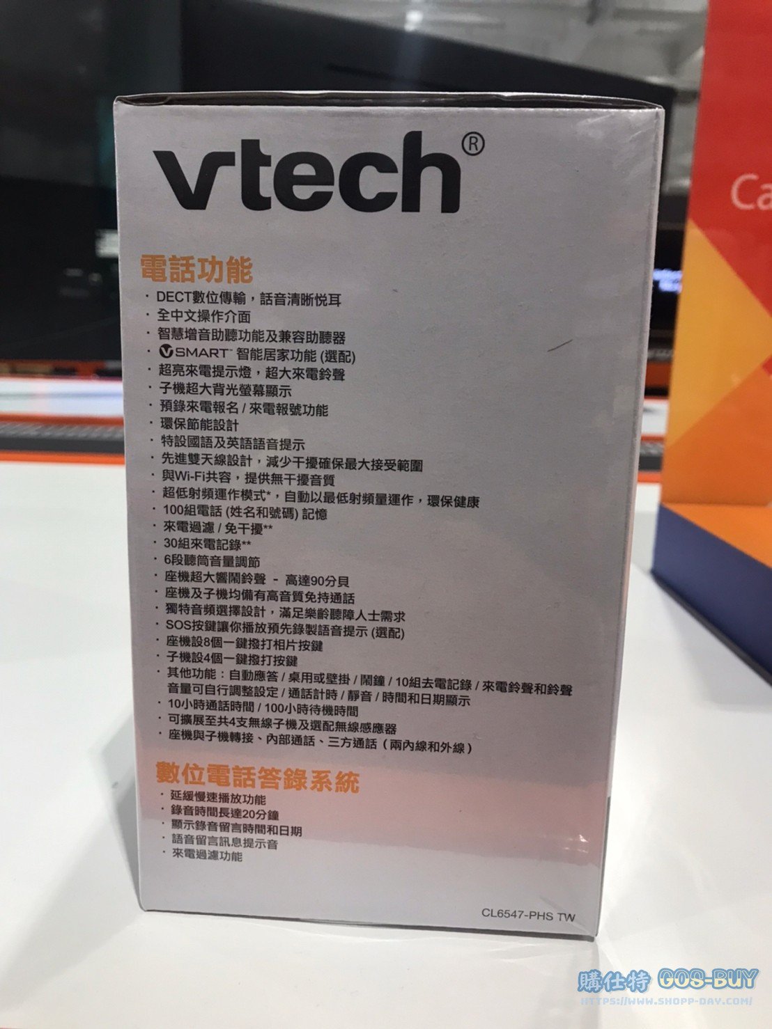 家電子產品其他電子產品 VTECH全家福擴音子母機電話組 #126575 By 網站小編 2022 年 3 月 18 日 690 產品資訊 產品資訊 產品名稱VTECH 全家福擴音子母機 電話組 有線*1+無線*2 CL6547-PHS TW #126575價格2499產地中國包裝規格一組(型號:CL6547-PHS TW)保存期限保固一年備註三種高低音頻提升模式增音鍵可加大2.5倍音量照片速撥鍵於主機/子機數位電話答錄機可慢速撥放適合銀髮聽障人士八組預設來電報名於報號來電提示燈/保固一年子機100小時待機時間2021年黑五特價2129→商品問題回報← 相關 標籤2021黑五商品VTECH家用電話 前一篇文章YAMAHA KEYBOARD 61鍵電子琴PSRE360MA 附琴架 #123681下一篇文章飛利浦全自動義式咖啡機#126296 網站小編https://shopp-day.com 或許你也感興趣 價格優惠資訊 2025好市多客製生日蛋糕價格表 價格優惠資訊 好市多Line社群加入方法 保健品&藥品 新甘木堅胃腸藥顆粒40包 #194496 購仕特-CosBuy 查詢排行 價格優惠資訊 2025好市多客製生日蛋糕價格表 價格優惠資訊 好市多Line社群加入方法 保健品&藥品 新甘木堅胃腸藥顆粒40包 #194496 價格優惠資訊 2025好市多會員護照-春季專案商品一覽表 價格優惠資訊 好市多美國牛肉整箱銷售價格表(2024/5/7) 裝載更多 熱門推薦 價格優惠資訊 Costco好市多 iphone14 Pro ProMax 價格表 價格優惠資訊 Costco 好市多 Apple Watch 2022年版價格表 家庭劇院 BOSE兩件式家庭劇院組 #137039 螢幕 MSI 27吋IPS電競螢幕FHD平面/144HZ OPTIX G271 #132273 其他電子產品 MIPRO 手提藍牙無線擴音機MA-708 #118489 裝載更多