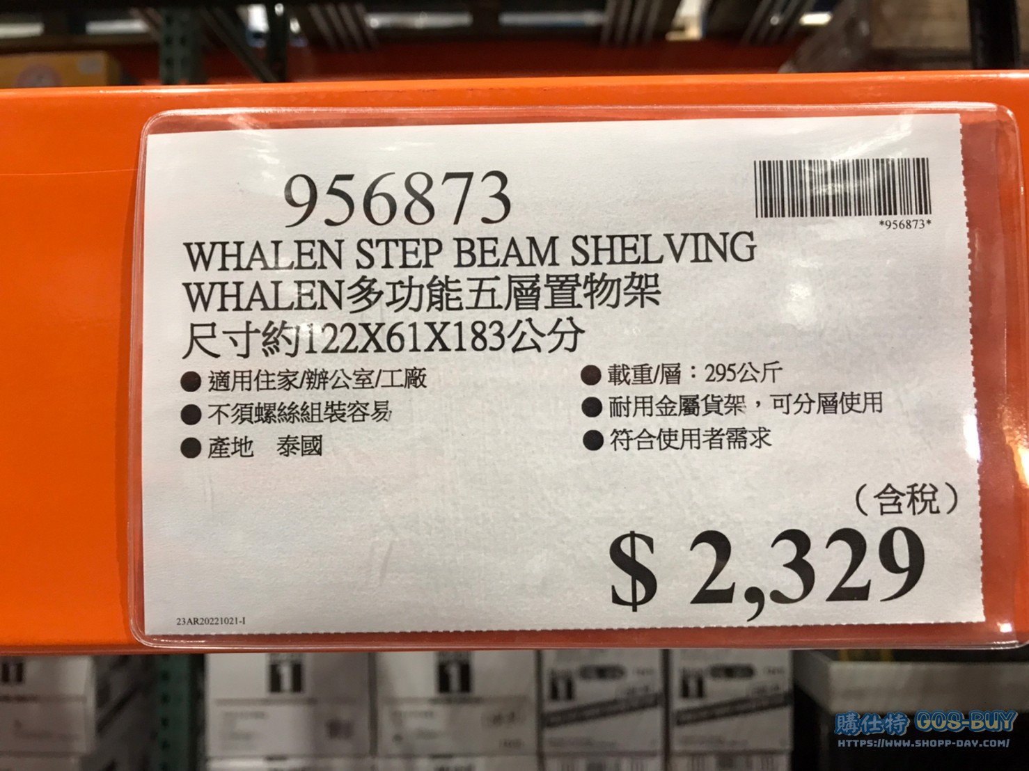 家廚房與居家生活相關 WHALEN 五層置物架 尺寸約122X61X183公分 #956873 By 網站小編 2022 年 2 月 21 日 620 產品資訊 產品資訊 產品名稱WHALEN 5SHELF STORAGE RACK WHALEN 五層置物架 尺寸約122X61X183公分 #956873價格2329產地泰國包裝規格一入 (尺寸約122X61X183公分)保存期限N/A備註適用住家 辦公室 工廠不須螺絲 組裝容易載重/層:295公斤耐用金屬貨架 可分層使用符合使用者需求2022/10/21查價價格由2179漲價為2329漲價150元 →商品問題回報← 相關 標籤WHALEN工業用貨架鐵架 前一篇文章IRIS充電式手持高壓清洗機 JHW-201 #135446下一篇文章BREF RIM BLOCK WC CLEANER 妙力懸掛式馬桶清潔球 50克X3入X4組 #134160 網站小編https://shopp-day.com 或許你也感興趣 價格優惠資訊 2025好市多客製生日蛋糕價格表 價格優惠資訊 好市多Line社群加入方法 保健品&藥品 新甘木堅胃腸藥顆粒40包 #194496 購仕特-CosBuy 查詢排行 價格優惠資訊 2025好市多客製生日蛋糕價格表 價格優惠資訊 好市多Line社群加入方法 保健品&藥品 新甘木堅胃腸藥顆粒40包 #194496 價格優惠資訊 2025好市多會員護照-春季專案商品一覽表 價格優惠資訊 好市多美國牛肉整箱銷售價格表(2024/5/7) 裝載更多 熱門推薦 廚房與居家生活相關 普拿疼伏冒熱飲20包 #84499 廚房與居家生活相關 DOMAINE DE LA BAUME 波姆酒莊金牌FITOU紅酒 #121971 廚房與居家生活相關 SIMON LI三人座牛皮沙發#1695608 廚房與居家生活相關 TAISHO大正胃腸藥顆粒52包 #126969 廚房與居家生活相關 IDEA NUOVA 摺疊椅 #1393843 裝載更多