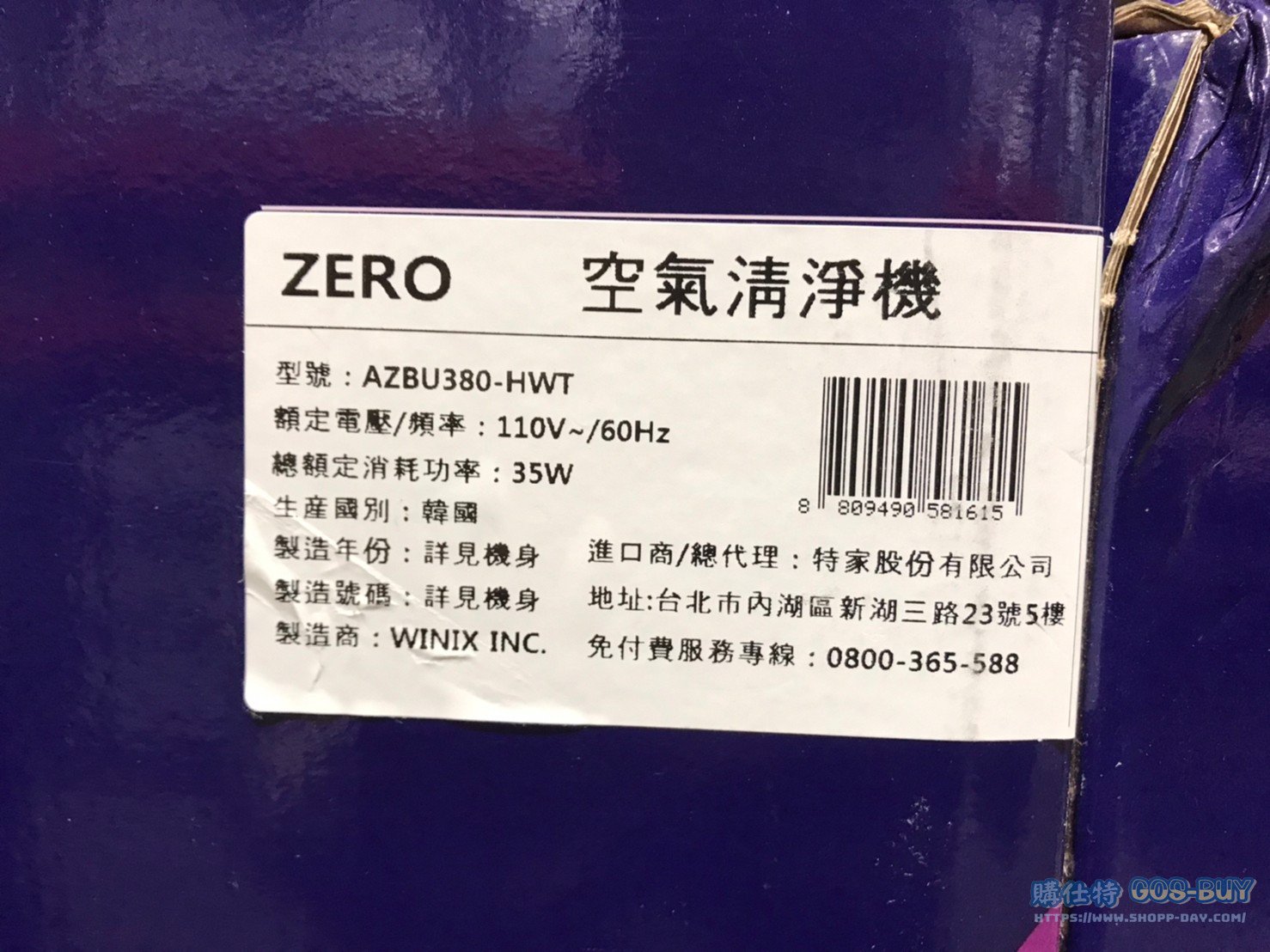 | 產品名稱 | WINIX AIR PURIFIER 空氣清淨機 ZERO #AZBU380-HWT #121689 |