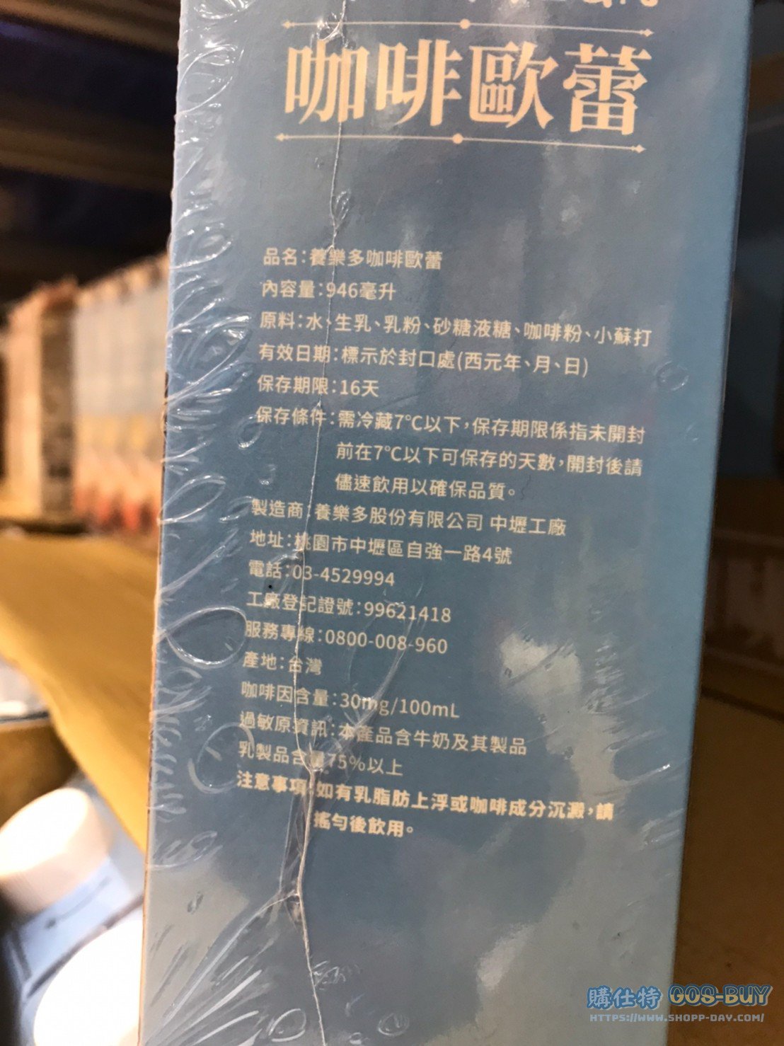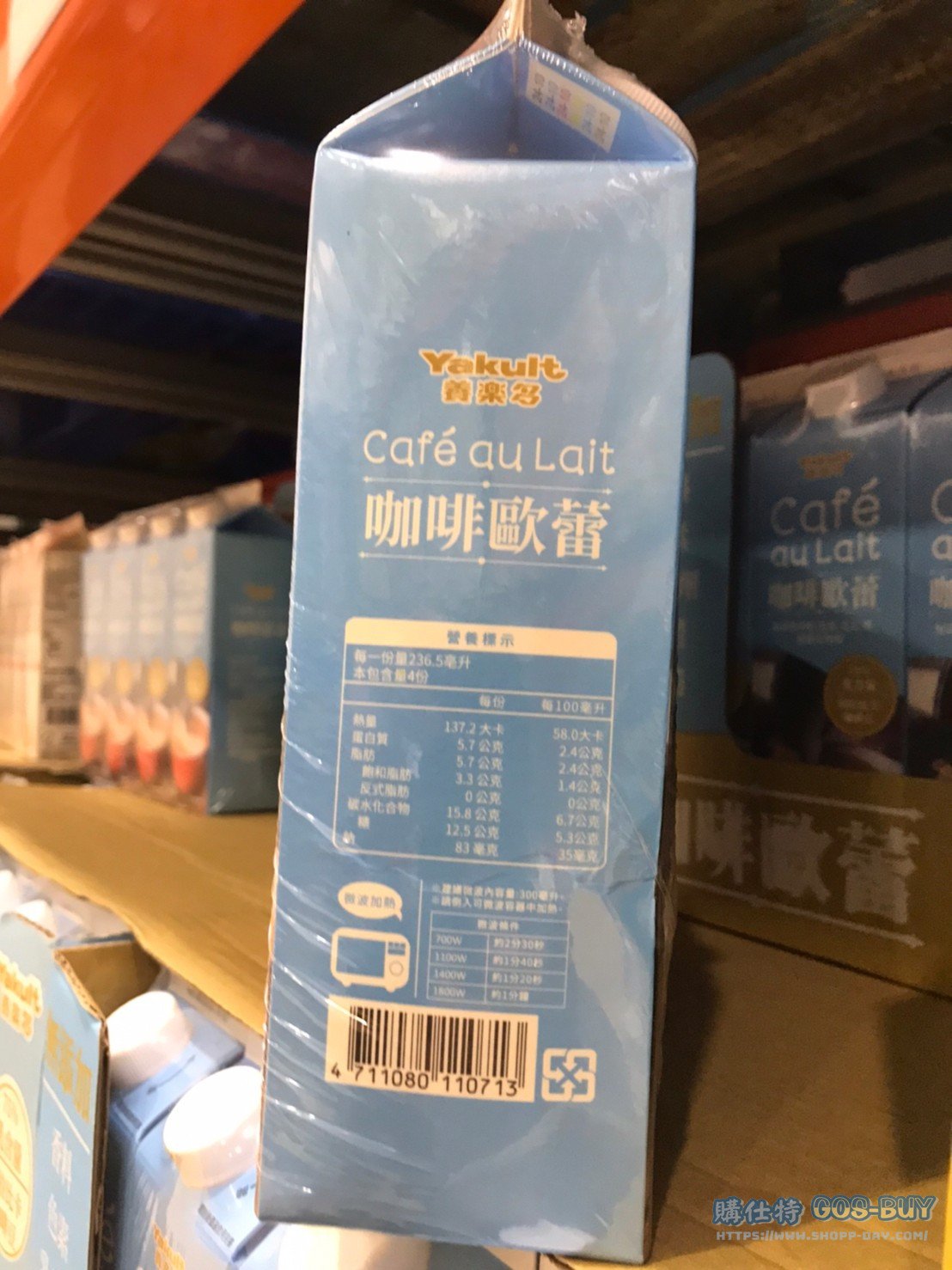 家零食&飲料冷藏飲品 YAKULT 養樂多咖啡歐蕾 #131536 By 網站小編 2022 年 4 月 21 日 338 產品資訊 產品資訊 產品名稱YAKULT 養樂多 CAFE AU LAIT咖啡歐蕾 乳含量75% 946ML X 4PK #131536價格209產地台灣包裝規格946ML X 4PK保存期限16天備註乳含量75%以上使用阿拉比卡豆無添加香料、色素、膠體乳化劑和奶精→商品問題回報← 相關 標籤咖啡奶茶養樂多 前一篇文章健達奇趣蛋 20公克 X 12入 #110333下一篇文章JUICE TALK 果汁宣言 芒果綜合果汁2.17L #135328 網站小編https://shopp-day.com 或許你也感興趣 價格優惠資訊 2025好市多客製生日蛋糕價格表 價格優惠資訊 好市多Line社群加入方法 保健品&藥品 新甘木堅胃腸藥顆粒40包 #194496 購仕特-CosBuy 查詢排行 價格優惠資訊 2025好市多客製生日蛋糕價格表 價格優惠資訊 好市多Line社群加入方法 保健品&藥品 新甘木堅胃腸藥顆粒40包 #194496 價格優惠資訊 2025好市多會員護照-春季專案商品一覽表 價格優惠資訊 好市多美國牛肉整箱銷售價格表(2024/5/7) 裝載更多 熱門推薦 美國零食 科克蘭葡萄乾巧克力#959987 冷藏飲品 BLUE DIAMOND 無糖原味杏仁飲1.89L #129794 西班牙零食 MR.BROWNIE 巧克力布郎尼#153753 泰國零食 A&R牛奶巧克力迷你甜筒餅乾#1744884 比利時零食 科克蘭烈酒與波特酒巧克力 #1351451 裝載更多