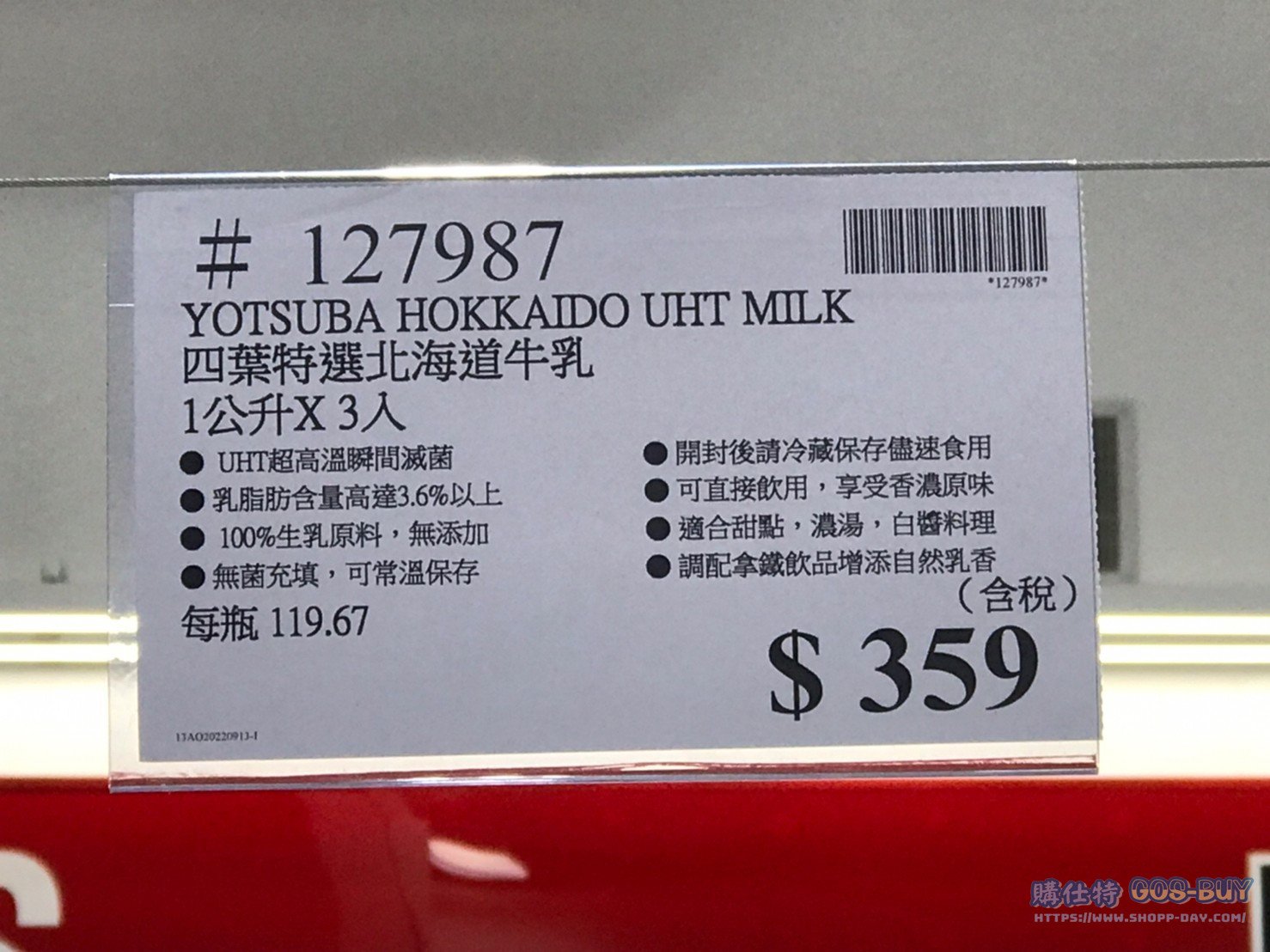 YOTSUBA四葉特選北海道牛乳1公升X3入 #127987