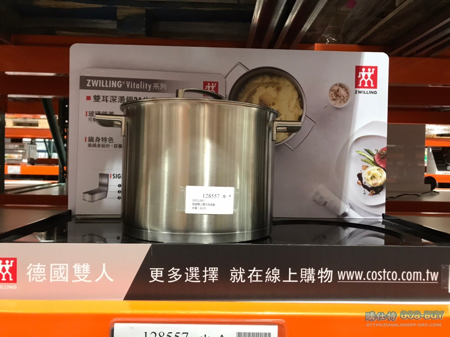 家廚房與居家生活相關 ZWILLING 德國雙人雙耳深湯鍋#128557 By 網站小編 2023 年 2 月 22 日 537 產品資訊 產品資訊 產品名稱ZWILLING 德國雙人雙耳深湯鍋容量:8公升#128557價格1999產地中國包裝規格一組保存期限N/A備註ㄇ型把手設計鍋身霧面拋光處理高鍋身設計,容量8公升18/10不鏽鋼材質(316不鏽鋼)玻璃鍋蓋設計可看見鍋內食材變化獨特三層鍋底壓制技術,導熱快速,節省能源適用於電爐、瓦斯爐、電陶爐、鹵素爐、電磁爐→商品問題回報← 相關 標籤深湯鍋湯鍋雙人牌 前一篇文章巧克力布朗尼蛋糕12入#139573下一篇文章歐樂B電動牙刷刷頭#123332 網站小編https://shopp-day.com 或許你也感興趣 價格優惠資訊 2025好市多客製生日蛋糕價格表 價格優惠資訊 好市多Line社群加入方法 保健品&藥品 新甘木堅胃腸藥顆粒40包 #194496 購仕特-CosBuy 查詢排行 價格優惠資訊 2025好市多客製生日蛋糕價格表 價格優惠資訊 好市多Line社群加入方法 保健品&藥品 新甘木堅胃腸藥顆粒40包 #194496 價格優惠資訊 2025好市多會員護照-春季專案商品一覽表 價格優惠資訊 好市多美國牛肉整箱銷售價格表(2024/5/7) 裝載更多 熱門推薦 廚房與居家生活相關 普拿疼伏冒熱飲20包 #84499 廚房與居家生活相關 DOMAINE DE LA BAUME 波姆酒莊金牌FITOU紅酒 #121971 廚房與居家生活相關 SIMON LI三人座牛皮沙發#1695608 廚房與居家生活相關 TAISHO大正胃腸藥顆粒52包 #126969 廚房與居家生活相關 IDEA NUOVA 摺疊椅 #1393843 裝載更多